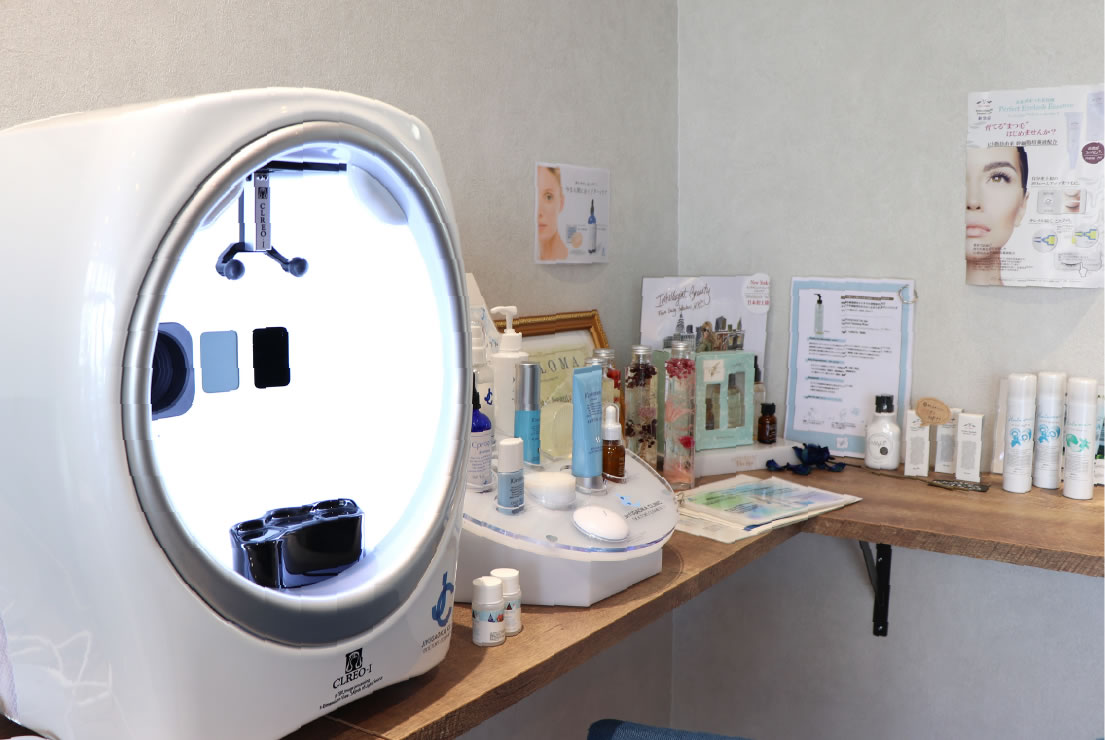お客様の肌の状態などをカメラ越しに確認させていただいたりしますので、お客様のほうでカメラを使いやすいようにしていただけるとスムーズです。